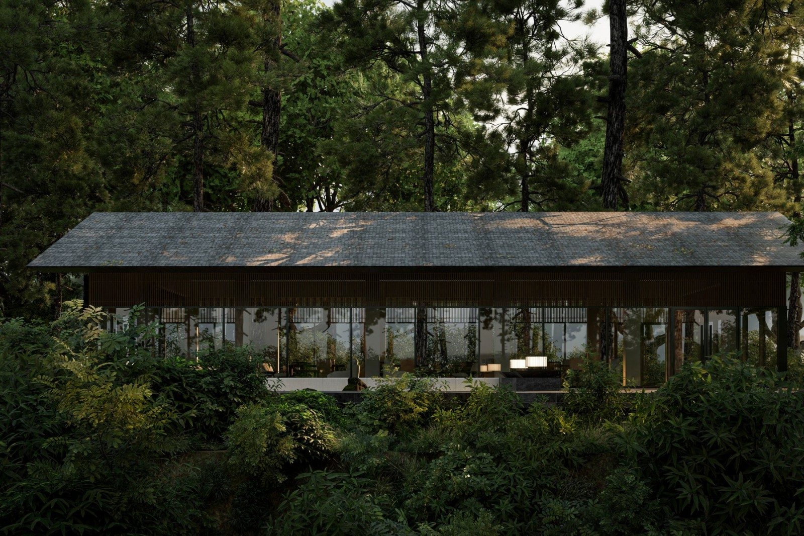 “归处”则是空间体验的目的地。规划上,以一座兼具接待与餐饮功能的公共建筑为核心,串联两处休闲独栋,形成“心(到达)· 息(聚合)· 栖(放松)”的节奏序列。这一序列并非强制性的动线,而是隐于林间的、可供自由探索的“生活线索”,引导住客从城市的喧嚣节奏,逐步沉入自然与内心的静谧。