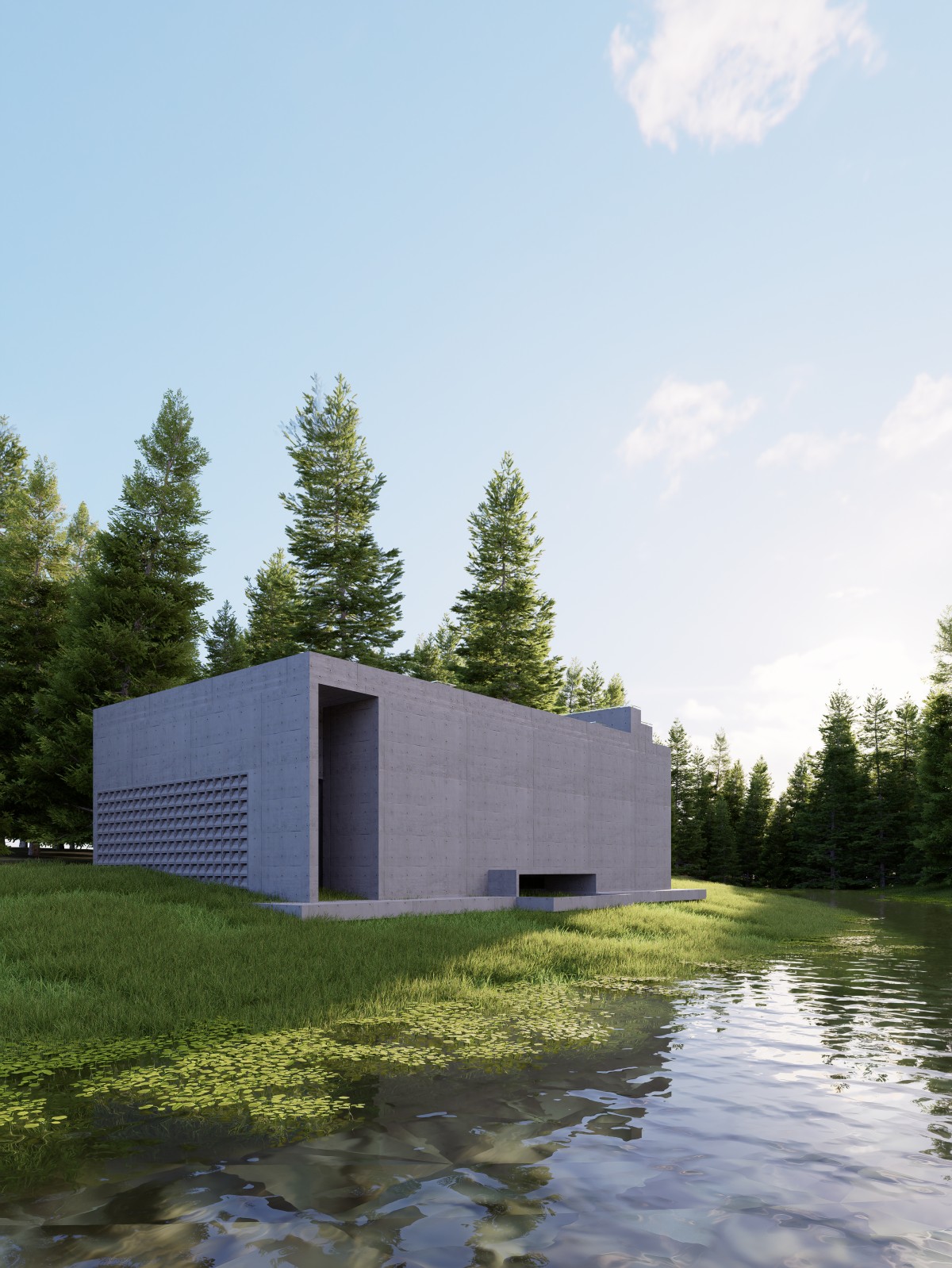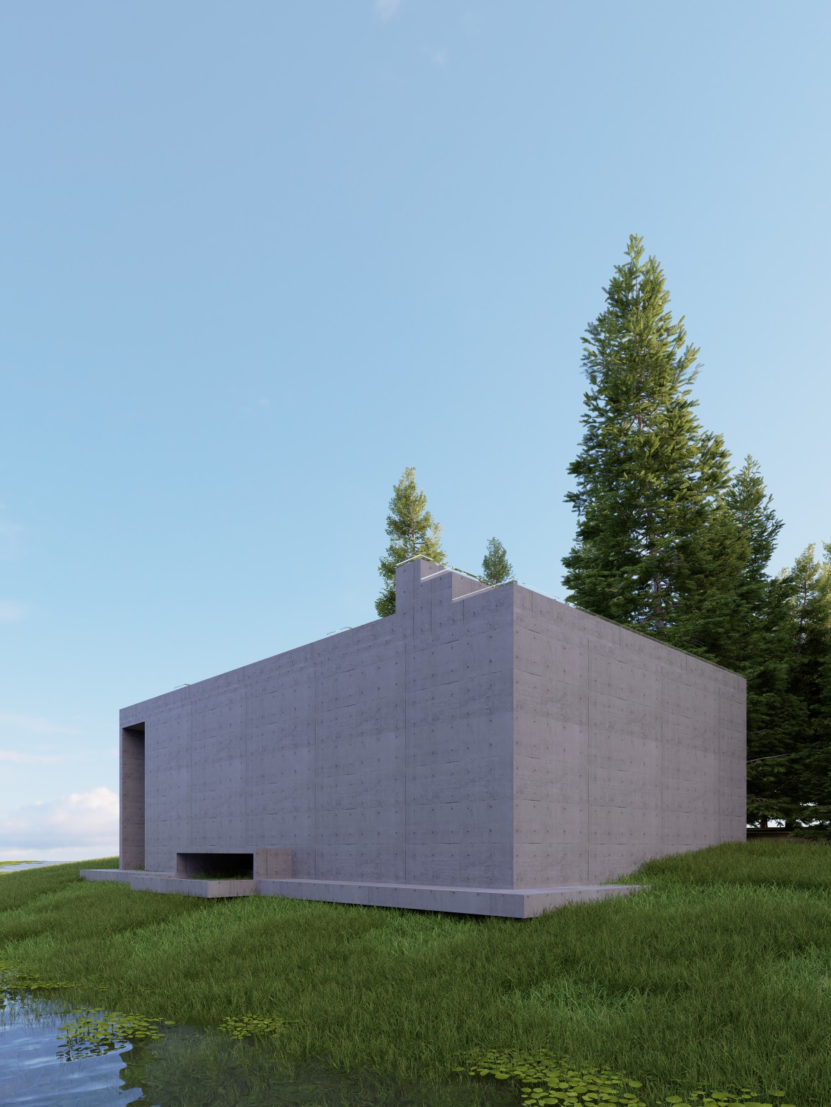 项目坐落于一座被大海与森林环绕的孤岛之上,拥有极致的自然景观。然而,其核心功能是作为冥想与禅修的专属空间,设计的起点并非“借景”,而是“隔绝”。在信息过载与视觉喧嚣的时代,如何创造一个能促使人心彻底沉静、向内观照的场域?我们的答案是一个由清水混凝土浇筑的、几近封闭的几何体。它以最质朴的姿态隔绝了海景与林色,旨在剥离一切外在干扰,为使用者开启一场回归内心宁静的旅程。